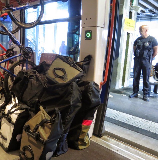 Once you’re on the local trains in France, the TER’s, then life becomes a little easier. Free for bikes, the only downside is if it’s busy. Although it was touch and go a couple of times even then we managed to jam on (successfully ignoring the sulky eye rolling of tired teenagers out of school). Then it’s all about comparing the different bike rack systems.