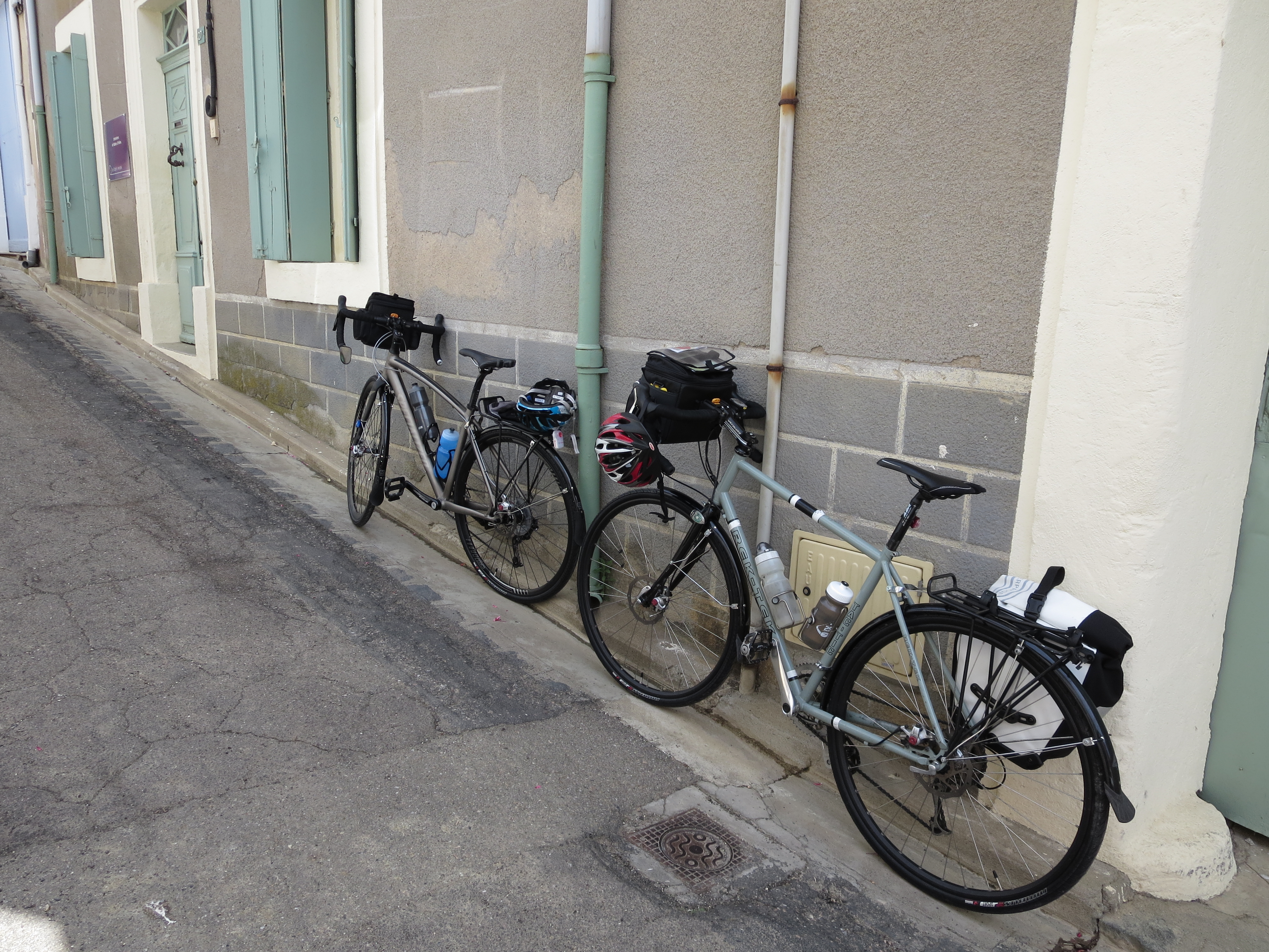I wish we could’ve taken a picture of the nightingales we heard singing as we rode into Autignac, our first stop in France. It was the most gorgeous, welcoming sound I could’ve wished for and made me feel we were exactly where we were supposed to be. We had stumbled out of the Beziers train station at 8pm in late May of last year after getting up at 5.30am in London, catching the Eurostar to France and then the TGV down to Beziers. I imagine this would be a rare occurrence, but our TGV was late leaving Paris and so we missed our connection in Montpellier to Beziers by local train. Hence the late arrival, we were already supposed to have arrived at our b&b in Autignac. Instead we spent the next hour building up our bikes and repacking our panniers with the bike bags. We had roughly 20kms to ride to Autignac via a scenic route our hosts Darren and Emma had kindly pointed out to us in their emails. A quick hop, but it took a while to get off the bumpy roads of Beziers. My panniers fell off after I failed to avoid a particularly big pothole. We reattached and rejigged them and they never came off again, but it slowed us down for a while. It was a stunning ride to the village though. Once off the main roads we were passed by perhaps one car. The sun was setting, it was warm after the traditional damp of England we had left behind and we rolled past vineyards on narrow country roads, passing through quiet villages. My first introduction to riding in France, pretty sweet.