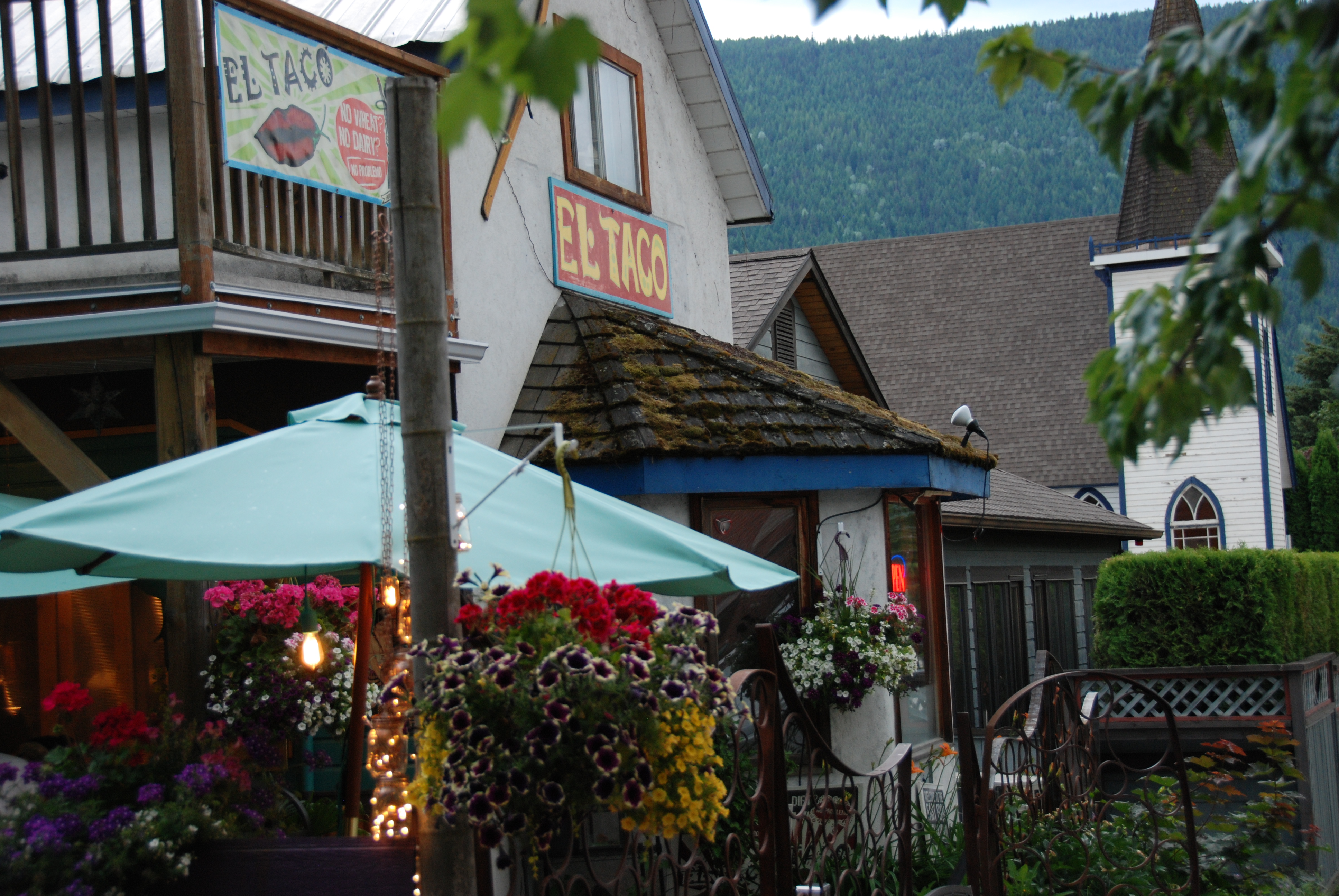 After a five-hour but beautiful drive from the Okanagan to the Kootenay region of BC we wound up in Nelson. It’s hip, it’s historic and it’s full of cool people living a (presumably) alternative life. Kick-started by Vietnam draft dodgers from the US with more liberal views, and cushioned by the wealth produced from a thriving marijuana industry over the last 20 years there’s an abundance of sport adrenaline junkies, organic farms and artisans. Someone remarked that people there were ‘hippicrites’, lots of expensive clothing masquerading as frugality, not part of the corporate world etc. I don’t know if that’s true or not, from locals in the nearby village of Procter we heard that many living in Nelson these days are working at two or three jobs – there’s very little in full-time work available – housing and rentals are expensive after the real estate boom begun in the early 2000’s and we noticed that there were many restaurants charging what amounts to Vancouver prices. We were on a budget ourselves and sought out the more reasonably priced eateries, El Taco was one of the best, $8 for a huge burrito; and a great little Indian restaurant called Baba’s with an outside eating area right on the sidewalk for a mid priced, and tasty butter chicken.