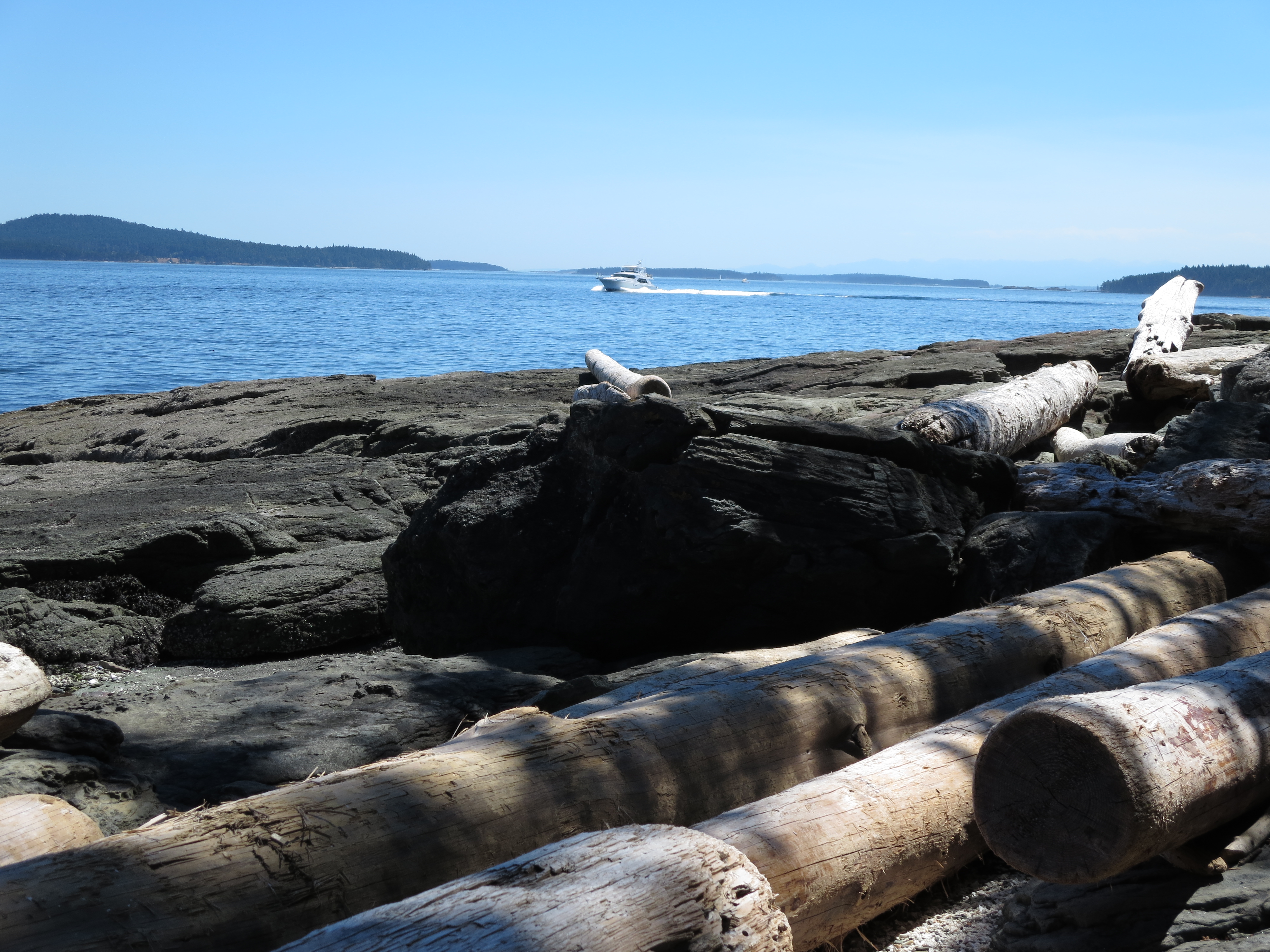 The island of Saltspring was our destination, Fulford Harbour our port of call. From there we rode to Ruckle Park to camp, only 9km or so away but on an intensely hilly and twisty road in what turned out to be 33c heat…